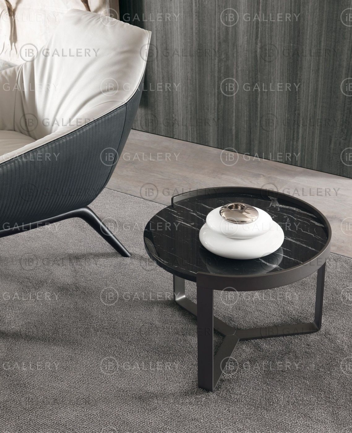 Оригинальный кофейный столик с круглой столешницей, выполненный в современном дизайне.