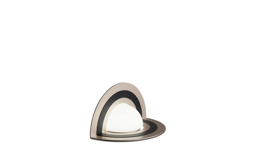 Структура выполнена в лакированном алюминии в черном цвете или цвете шампанского. Светорассеиватель сделан из муранского стекла.