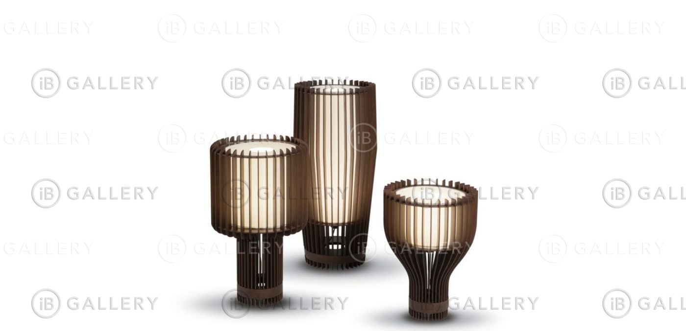 Настольная лампа со структура из дуба. Абажур выполнен из ткани.