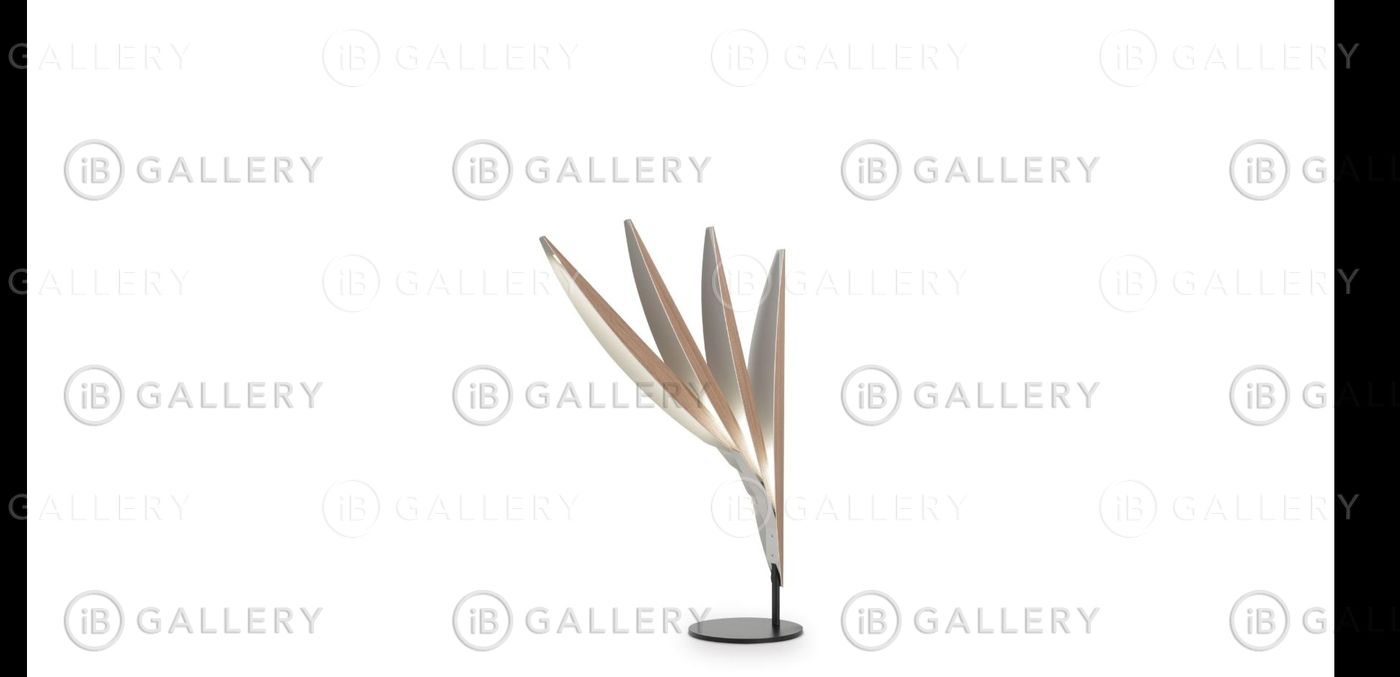 Настольный светильник со структурой из окрашенной стали в белом цвете.