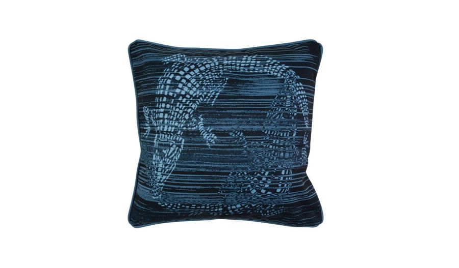 Стильная подушка, выполненная в синих цветах. Рисунок в виде двух крокодилов.
