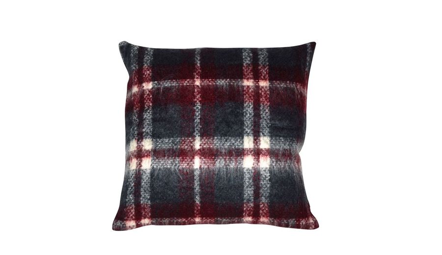 Дизайнерская подушка с рисунком "Tartan" в цвете Bordeaux. Задняя часть в черном цвете.