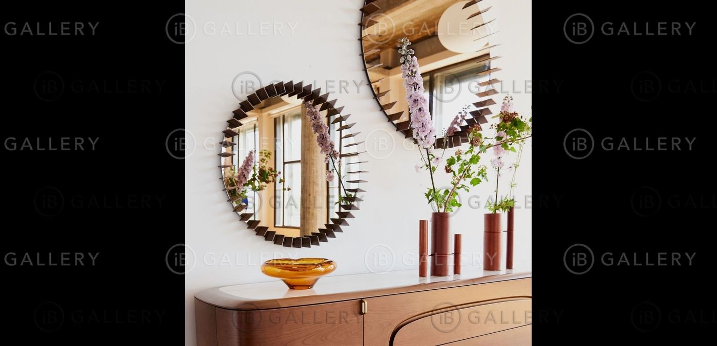 Бронзовое зеркало. Отделка из лакированного мореного дуба.