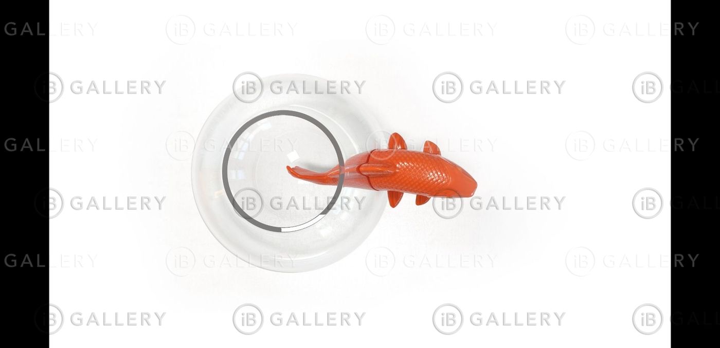 Сделана из выдувного стекла, рыбки сделаны из фарфора.