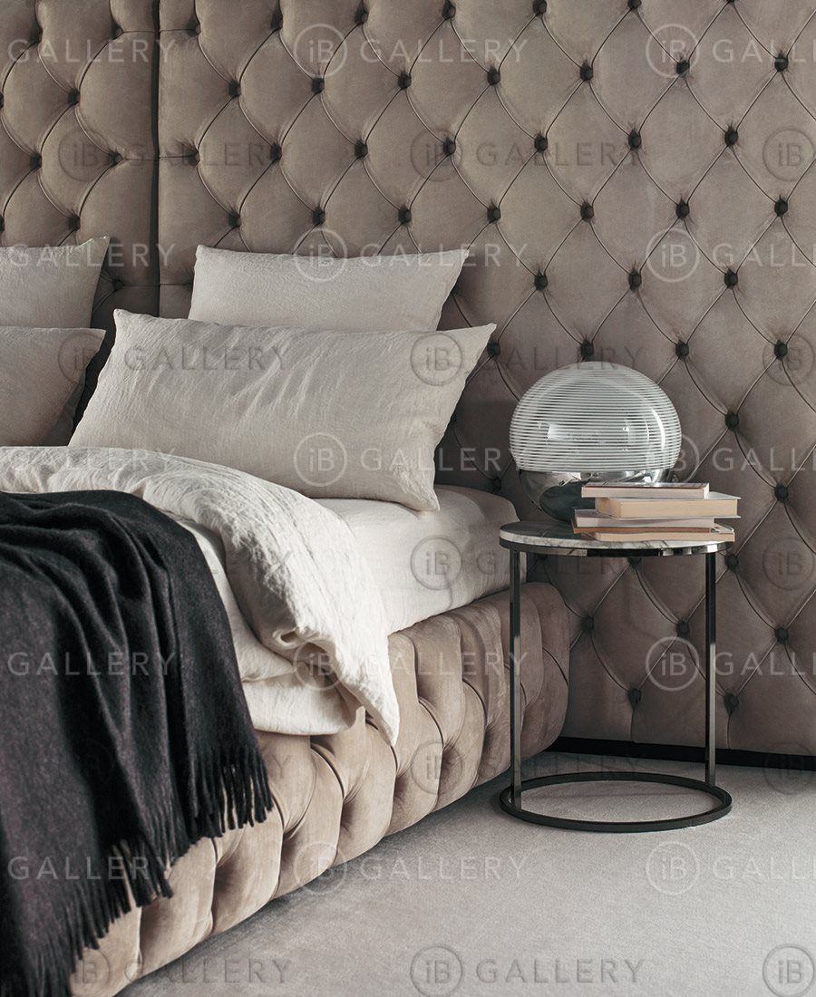Рама выполнена из металла в лакированной отделке. Столешница может быть сделана из шпона бука, стекла, мрамора или обтянуто кожей.