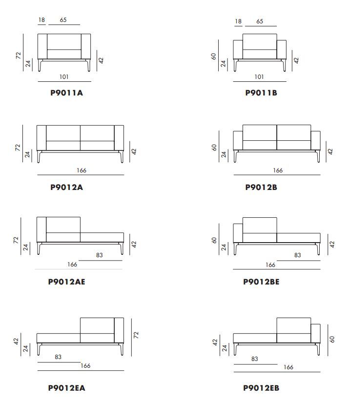 * Цена указана за диван Slim sofa P9012BE в размере 166*80*60 см в отделке Fake Leather