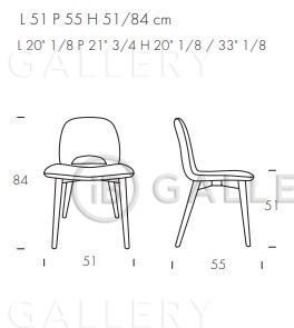 Ножки сделаны из дерева, доступны в отделках орех Каналетто, тёмный дуб или чёрный ясень. Обивка в коже, эко-коже или ткани.