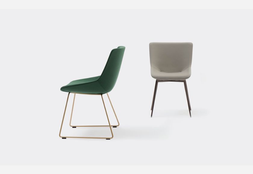 Основание сделано из окрашенного металла с четырьмя ножками и на полозьях. Доступны модели в обивке из кожи, эко-кожи и ткани.