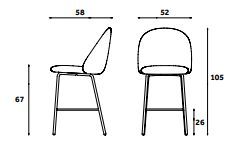 Оснащен высокими ножками, выполненными из окрашенного металла. Форма сидения выполнена из полипропилена. Обивка доступна в нескольких вариантах расцветки, сделана из ткани.