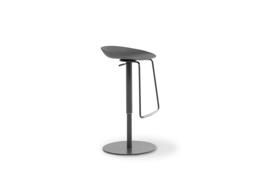 Барный табурет, который регулируется по высоте. Сидение может быть сделано из кожи или полипропилена.