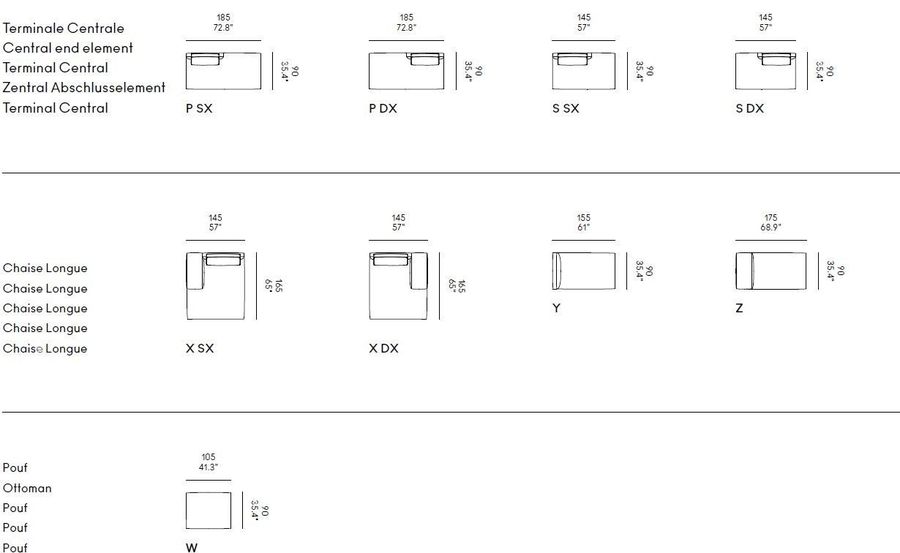 - Модульная диванная система из 3 частей в обивке из ткани или кожи
