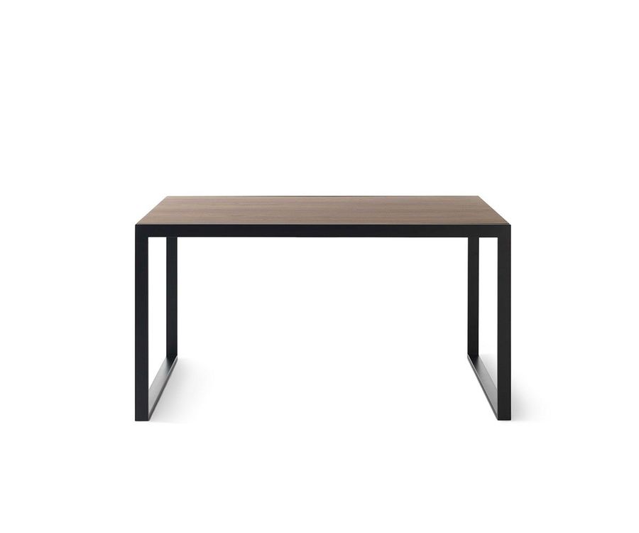 Окрашенная металлическая конструкция. Столешница выполнена из дерева, удлинитель из ДСП в шпоне или в черном или белом цвете.