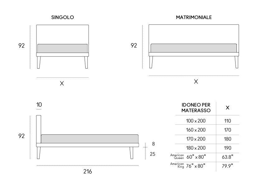 * Цена указана за кровать Ebridi Tessile Legno в размере 110*216*92 см в отделке Ecopelle