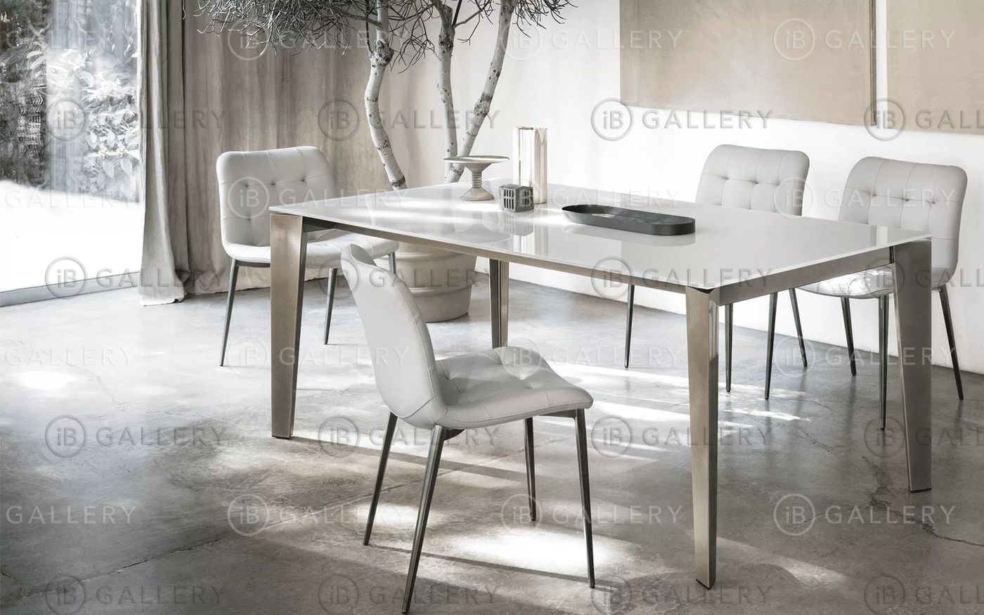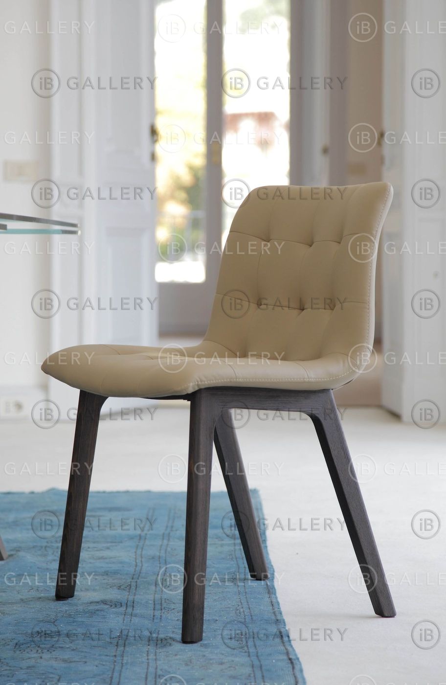 Мягкие сиденье и спинка обиты натуральной кожей и украшены стежкой капитоне.