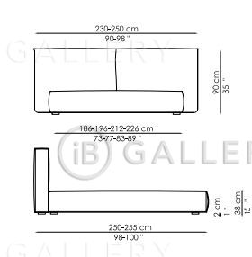 Наполнитель основания и широкого изголовья — перо. Изголовье и основание выполнено в съемных текстильных чехлах или в стационарной кожаной обивке.