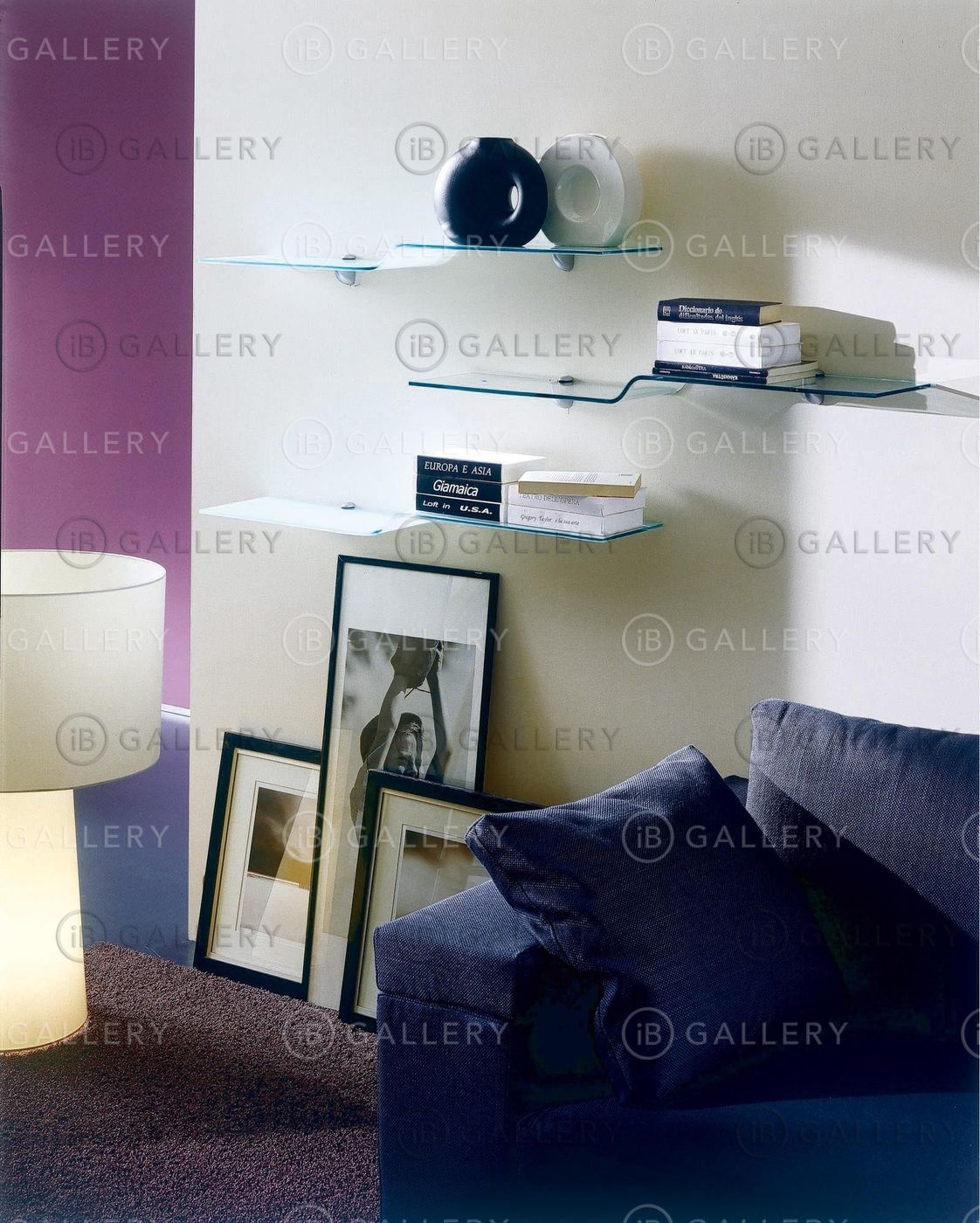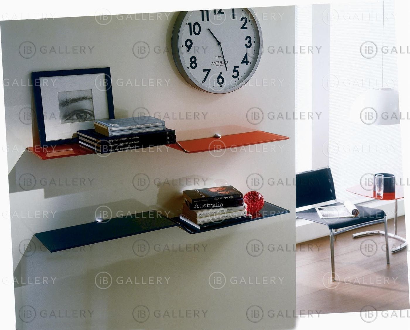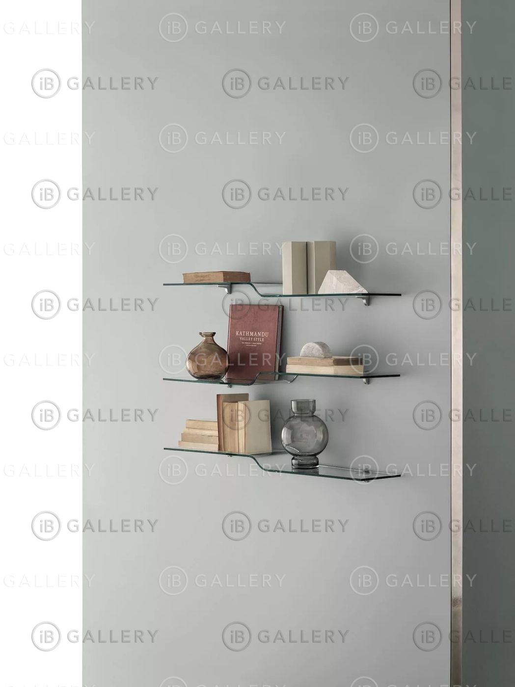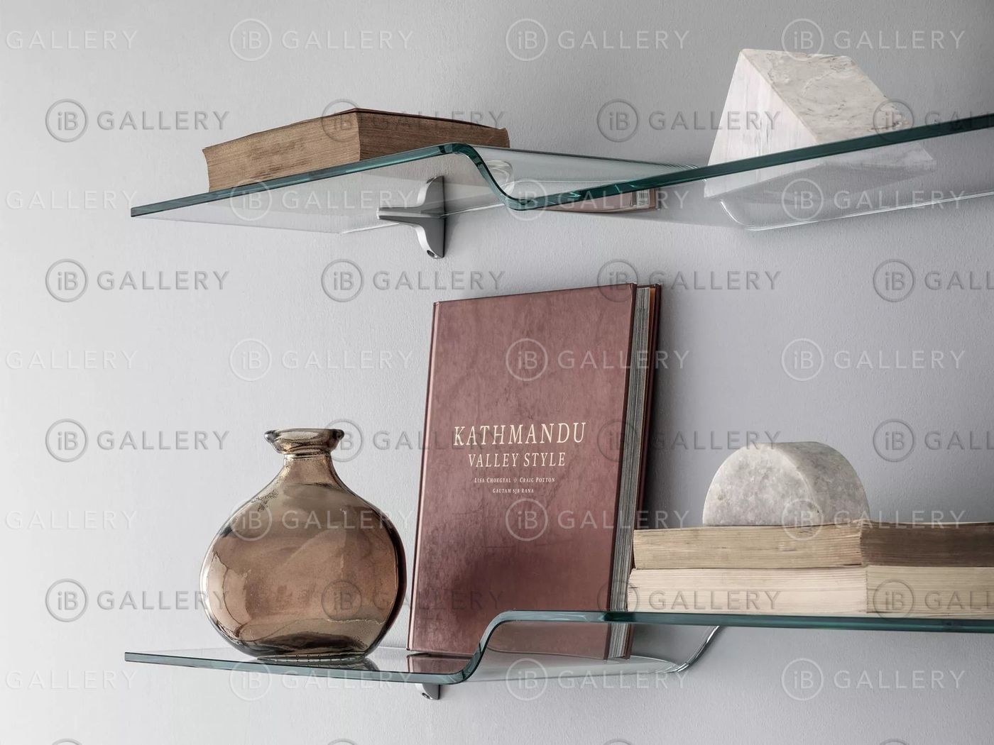Книжная полка слегка изогнута и выполнена из стекла.