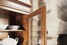 Стенка выполнена из дерева в коричневом цвете и разделена на три вертикальных отсека.