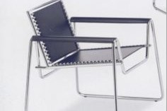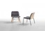 Кресло с основанием на четырех ножках из дерева и лакированной стали. Деревянная оболочка или обитая кожей, экокожей, тканью или изготовленной на заказ тканью.