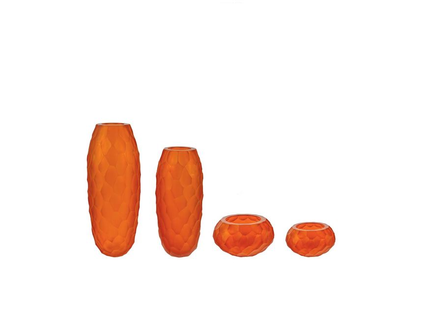 Три различные технологии изготовления дополняют это исследование: отделка баттуто, ребристость, а также характерные пузырьки воздуха и зеркальные сферы.