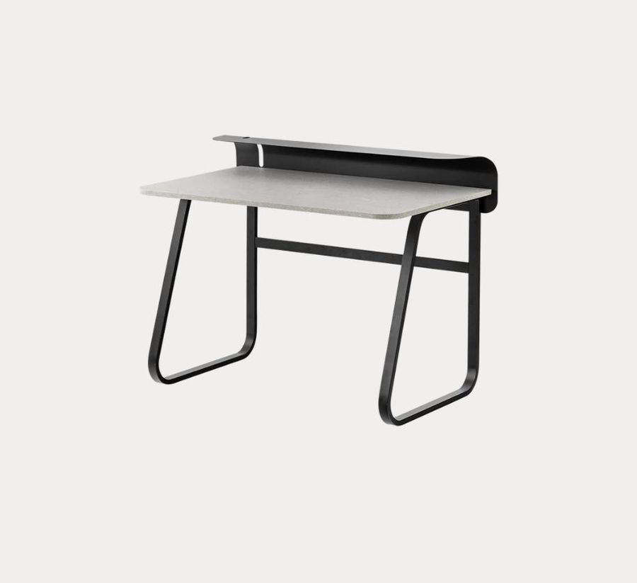 Он доступен с верхним слоем из эко-камня, изготовленным из переработанных композитных материалов после потребления, и снова подлежит вторичной переработке в конце срока службы. Боковины из прямоугольной металлической трубы с металлическим элементом с прорезями для кабелей.