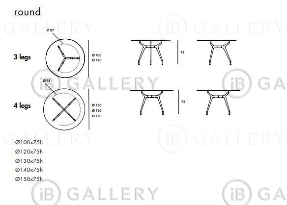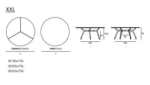 * Цена указана за стол Arkos round в размере 100*100*75 см на основании lacquered aluminium GB со столешницей Clear Glass
