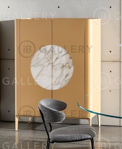 Высокий сервант с двумя дверцами. Доступна также версия с круглой вставкой из стекла, керамики или зеркала.