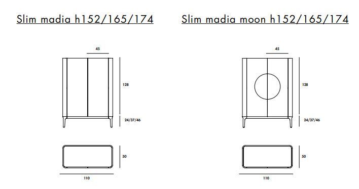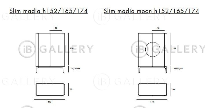 * Цена указана за сервант Madia Slim в размере 110*50*152 см на основании GB, с дверцами WG и топом в кат. N