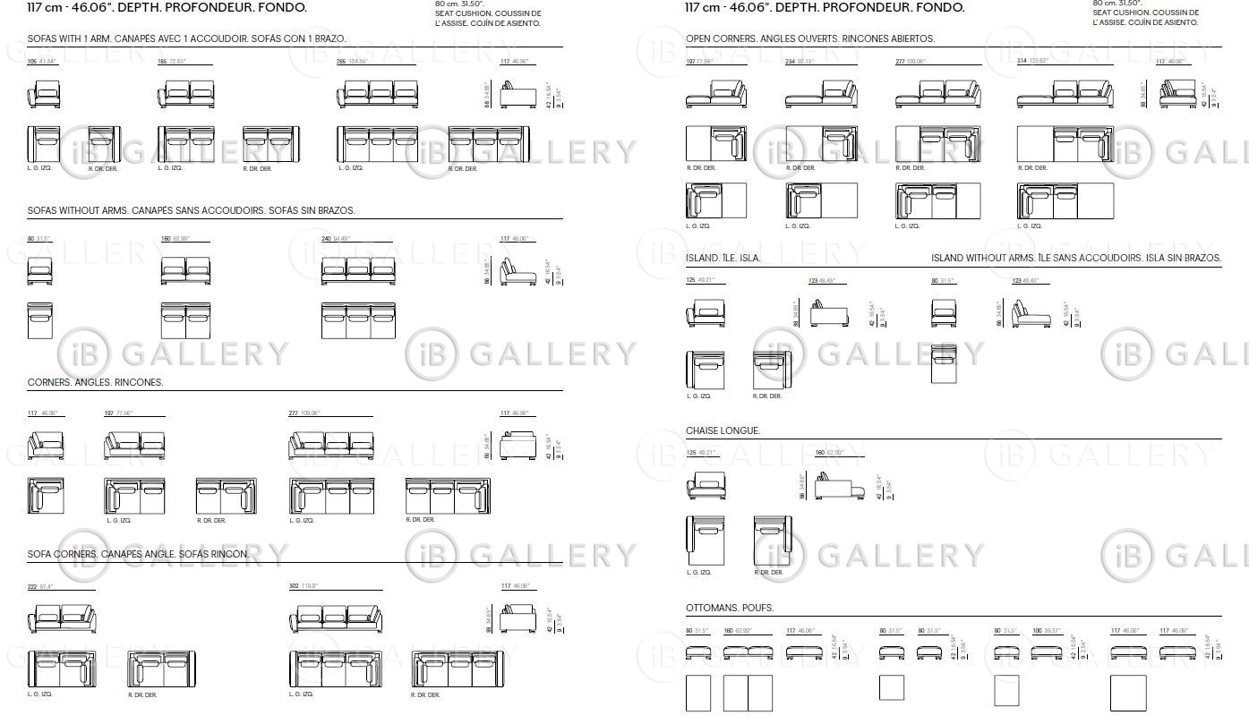 Диваны и модульные системы из коллекции, доступные в двух вариантах глубины и разных размеров, приглашают вас поиграть с их композицией и функциональностью. Они также предлагают возможность органичной интеграции таких элементов, как деревянные модули, которые выполняют функцию хранилища.