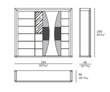 Книжный шкаф коллекции Vogue имеет структуру из дерева с отделкой глянцевым лаком, центральная дверь сдвигается вправо и влево и украшена вставками из вышитой кожи.