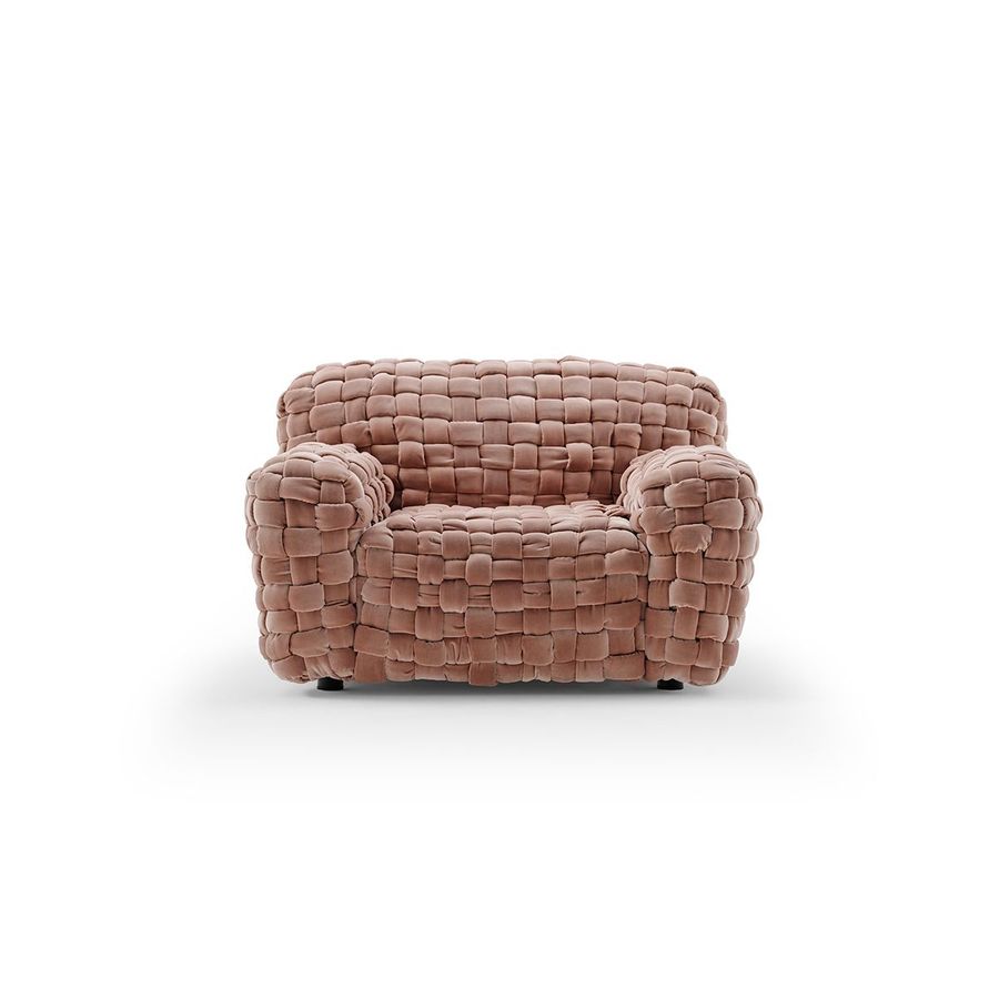 Кресло коллекции Azul выглядит как макроплетение из бархата, напоминающее традиционные технологии высокой моды. Совершенство коренится именно в его несовершенстве, в его способности создавать уют и моделировать атмосферу в среде, в которую оно встроено. Кресло Azul выполнено в виде макроплетения.