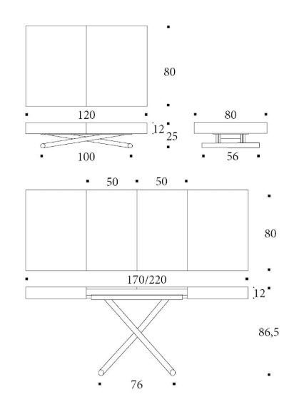 Журнальный стол-трансформер, который раскладывается в полноценный обеденный стол. Металлический каркас, столешница из меламина, шпона, дерева или под камень. Оснащен газ-лифтом и колёсиками. Регулируется по высоте от 25 до 86,5 см.