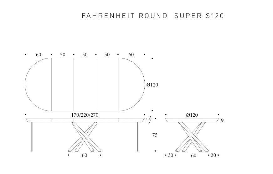 * Цена указана за стол Fahrenheit Round Super AT109S120 в размере 120(270)*75 см на основании M04 со столешницей Melamine