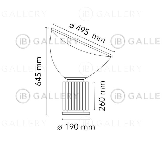 Настольная лампа, обеспечивающая непрямой и отраженный свет. Отражатель из окрашенного алюминия, глянцево-белый снаружи и матово-белый внутри. Направленный рассеиватель из прозрачного выдувного стекла.
