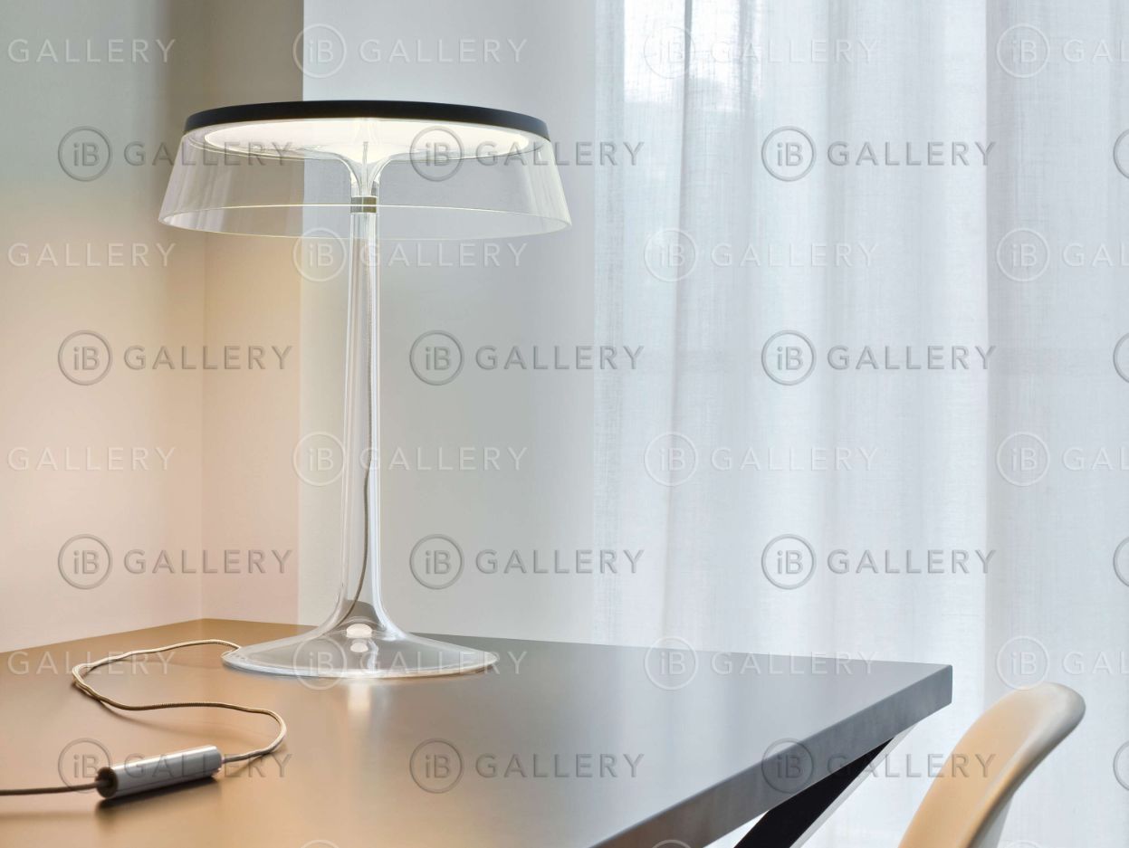 Настольная лампа, обеспечивающая рассеянный свет. Прозрачная основа и рассеиватель из ПММА, отлитые под давлением.