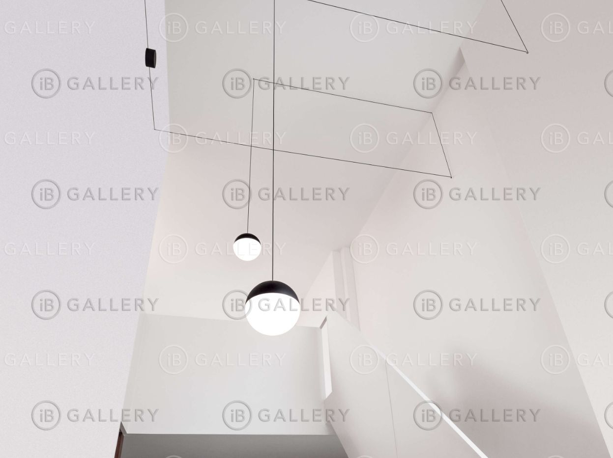 Подвесной светильник, обеспечивающий рассеянный свет. Корпус из литого под давлением алюминия, покрытый черным, белым или синим лаком, покрыт прозрачным лаком soft-touch. Оптический рассеиватель из опалового ПК. Подвесная система длиной 12 метров с коаксиальным кабелем, армированным кевларом.