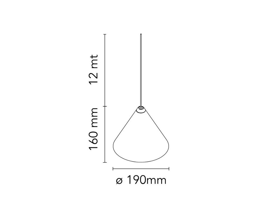 Подвесной светильник, обеспечивающий рассеянный свет. Корпус из литого под давлением алюминия, покрытый черным, белым или синим лаком, покрыт прозрачным лаком soft-touch. Оптический рассеиватель из опалового ПК. Подвесная система длиной 12 метров с коаксиальным кабелем, армированным кевларом.