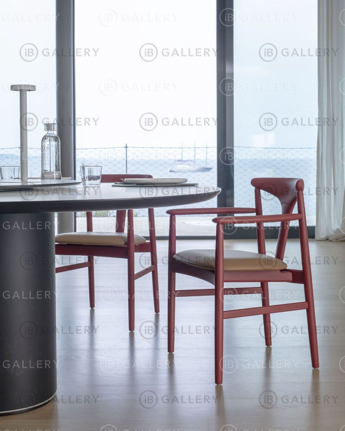 Фирменной особенностью стула и кресел является спинка с органичными линиями, которая изящно опирается на раму, как стрекоза — “Тонбо” по-японски. Специальные закругленные соединения - вот что создает этот деликатный эффект. Каркас изготовлен из массива ясеня, а сиденье обито тканью или кожей.