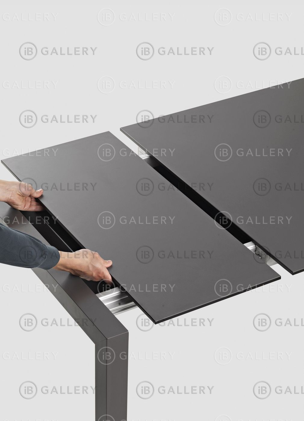 - Фиксированный или раздвижной стол со столешницей из ламината, Fenix-NTM или стекла