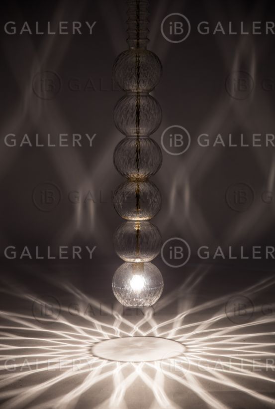 - Подвесной светильник с плафоном из стекла и сферическими подвесками из хрусталя.