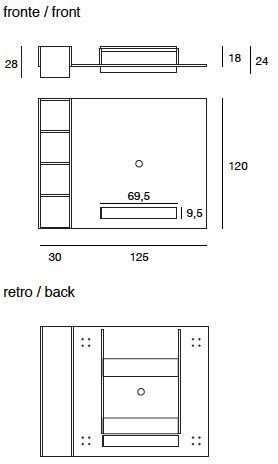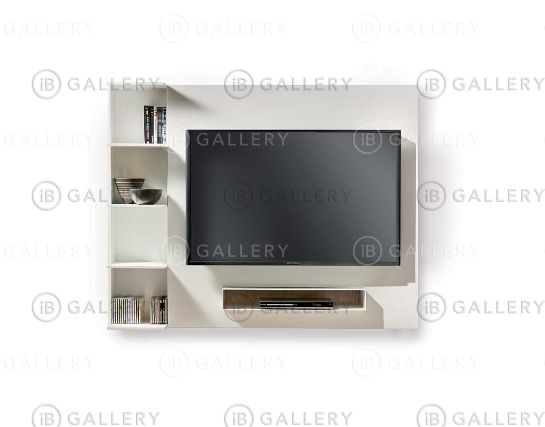 Настенная подставка для телевизора Ghost состоит из открывающейся панели, которая может быть дополнена боковым книжным шкафом, который можно расположить справа или слева от подставки для телевизора.