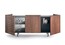 - Современный буфет из ореха Каналетто и полками из стекла