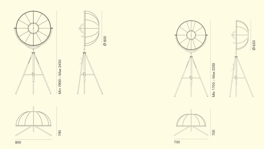 Идея основания возникла из штатива камеры с регулируемой ножкой, в то время как для абажура Мариано Фортуни изменил типичные абажуры того времени, сделав их наклоняемыми и, таким образом, создав инструмент для ориентации света. В истории дизайна найдется немного проектов, способных дать новые интерпретации, сохранив неповторимую индивидуальность. Новая версия с серебристой тканью от знаменитой ткацкой фабрики Rubelli - еще один пример.