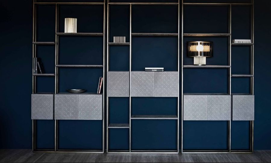 Книжные полки, покрытые бронзовым лаком или темным хромом, доступны в различных конфигурациях.