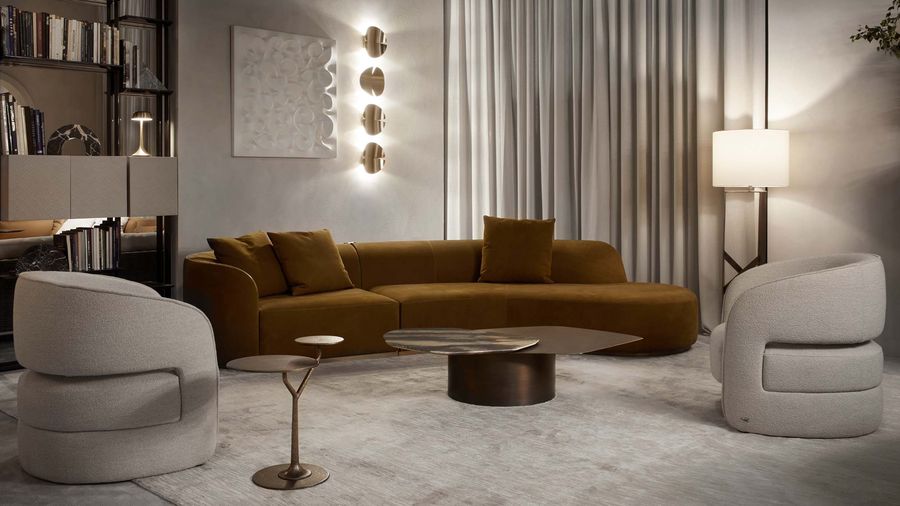 Ассортимент модульных диванов. Изогнутые торцевые и угловые модули помогают создавать уникальные и извилистые композиции.