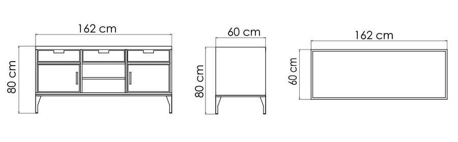 Оригинальный буфет, оснащенный 3 выдвижными ящиками и 4 распашными дверцами.