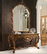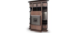 Оснащен 4 дверцами. Представлен на деревянной раме, которая обтянута кожей.