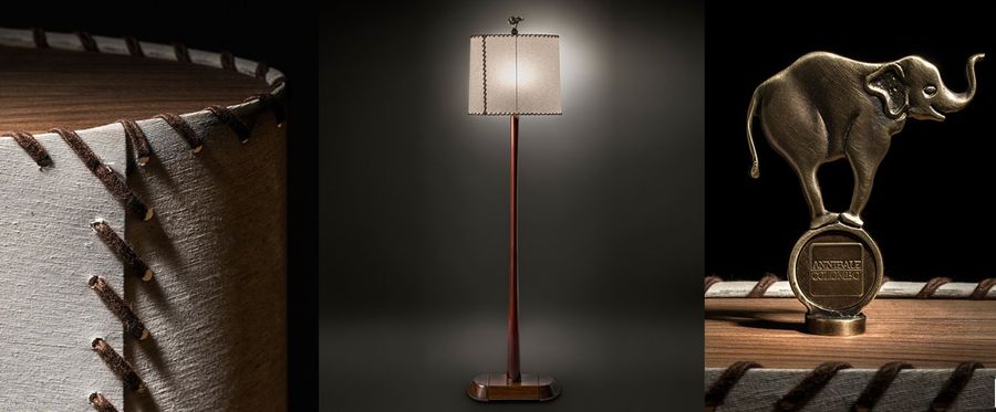 Модель сделана с основанием из дерева. Абажур представлен в ткани.