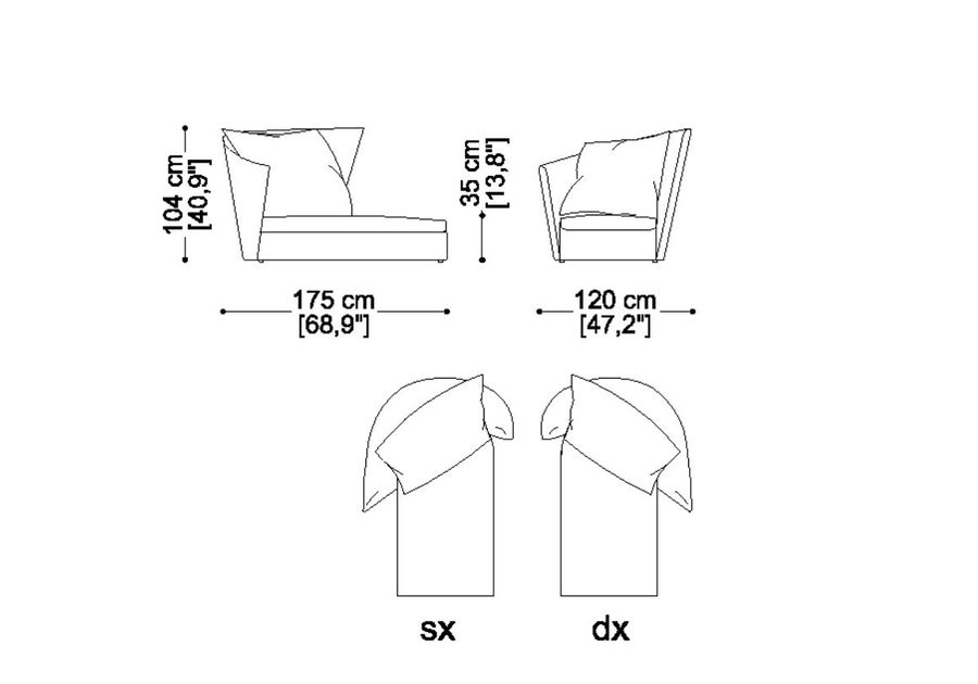Обивка представлена в ткани или коже. Ножки невидимые, из пластика.