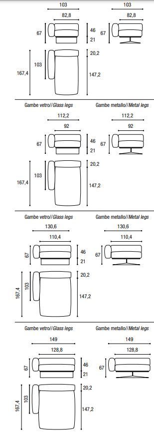 Технология алюминиевого каркаса и запатентованные механизмы соединения сидений и спинок позволяют создавать бесконечные конфигурации всего за несколько простых шагов, что дает вам свободу создавать свою собственную композицию. Опоры, выполненные из особо прозрачного закаленного стекла или металла, придают воздушному мягкому дивану неземной инновационный вид в любом помещении.
