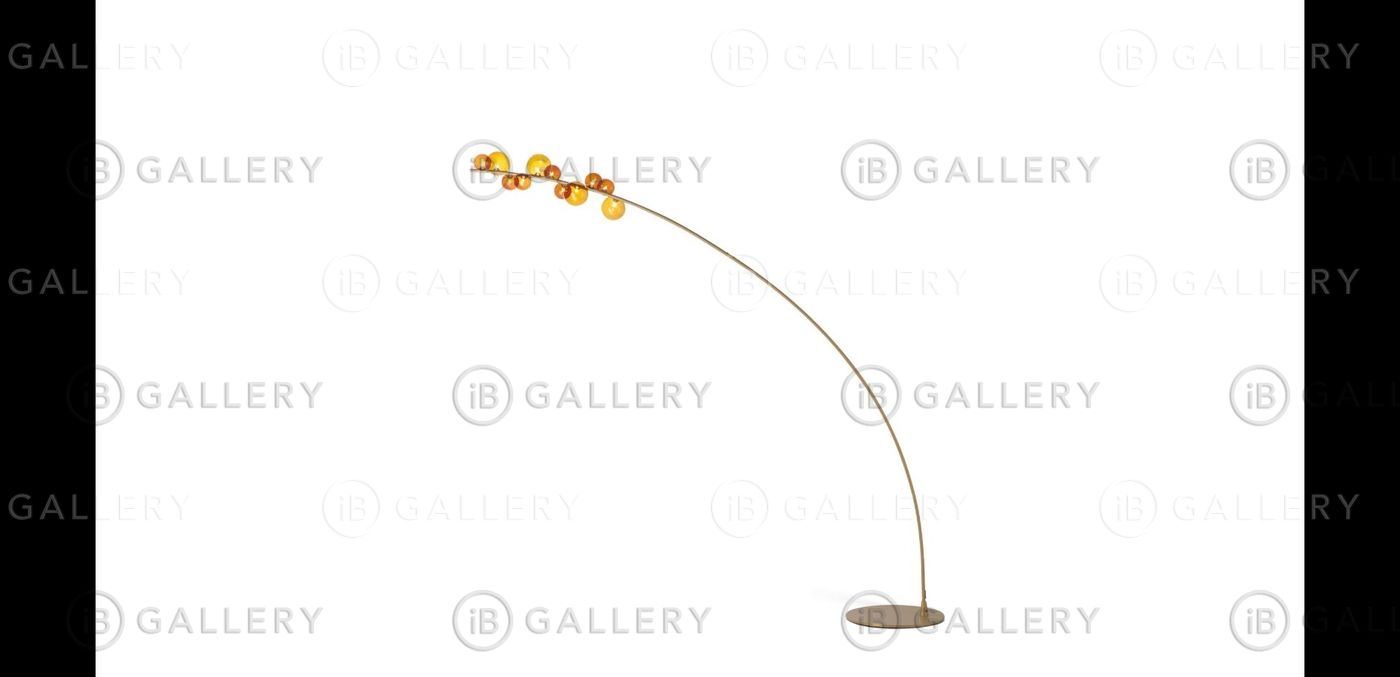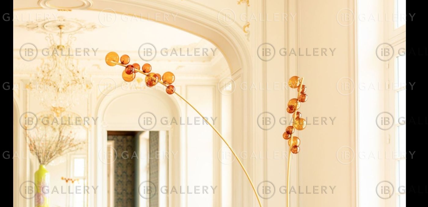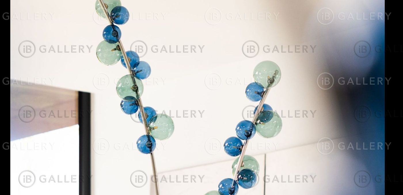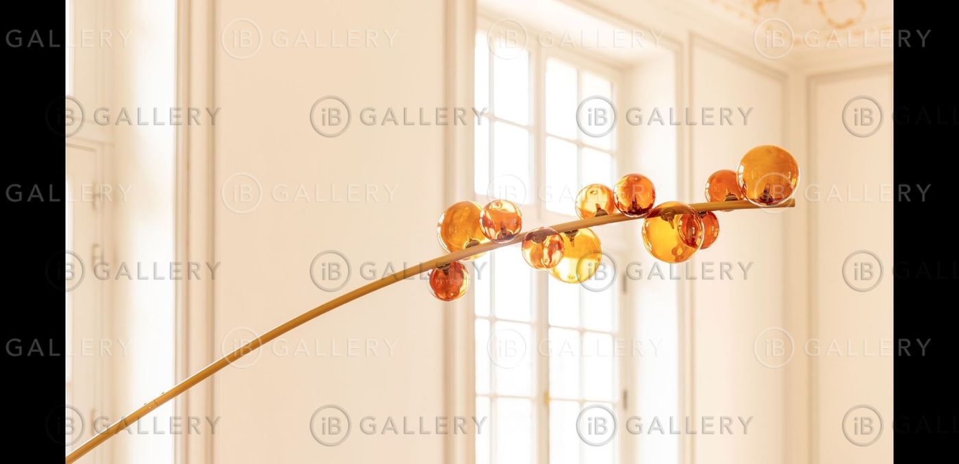 Он из 11 сфер из выдувного стекла на конструкции из нержавеющей стали, покрытой латунным лаком.